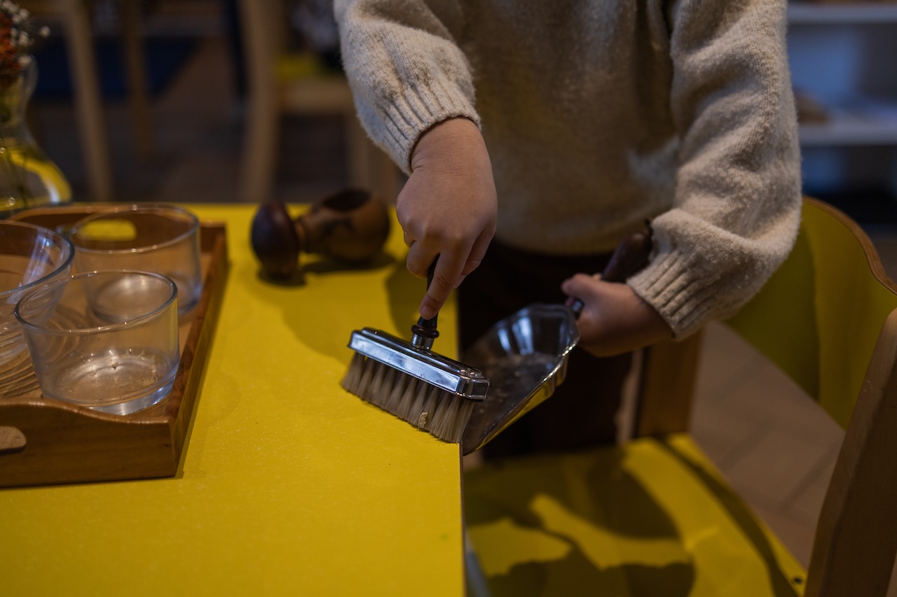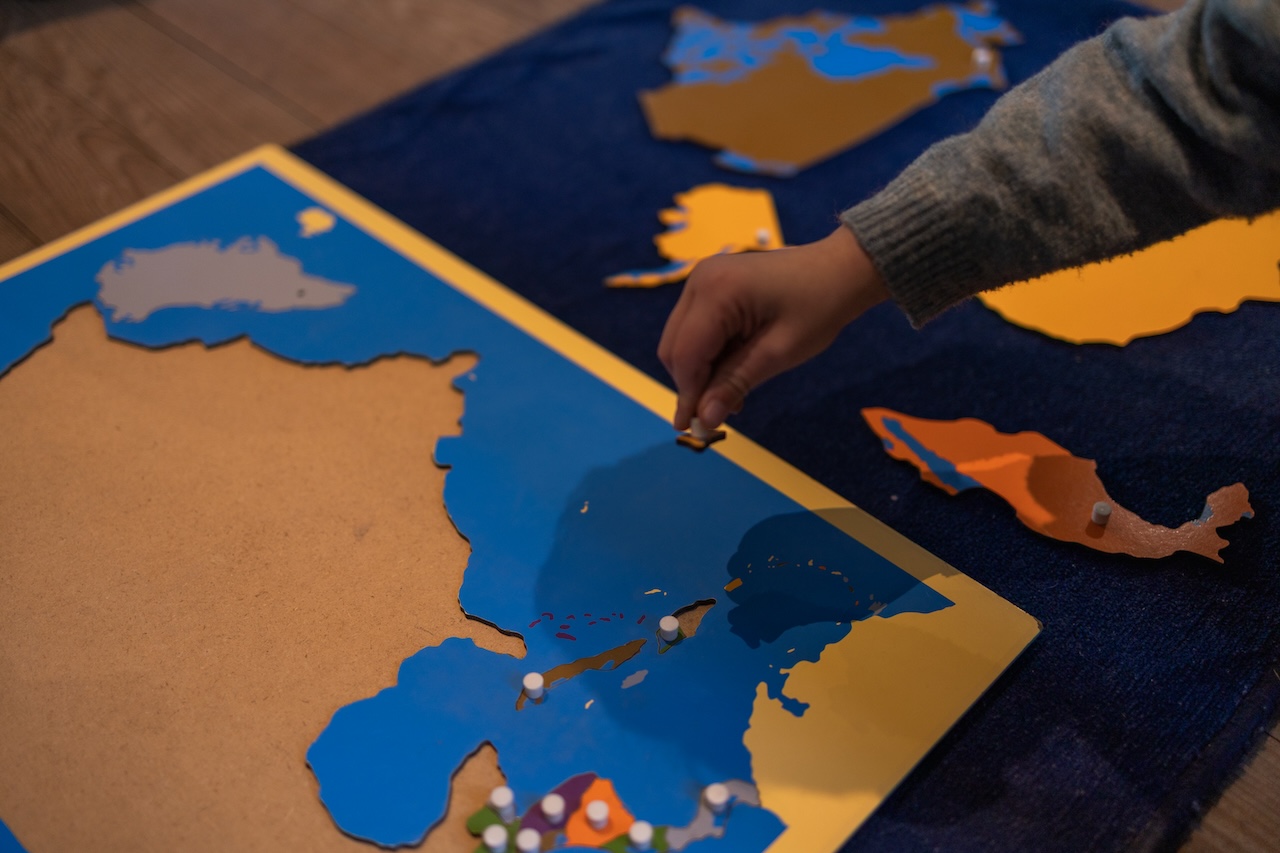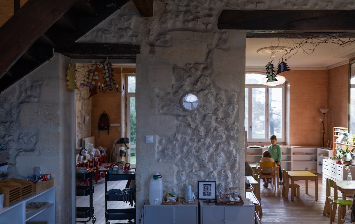 L’éducatrice a préparé un environnement soigné et nourrissant pour l’esprit absorbant des 3-6 ans, où est installé le matériel pédagogique et sensoriel..